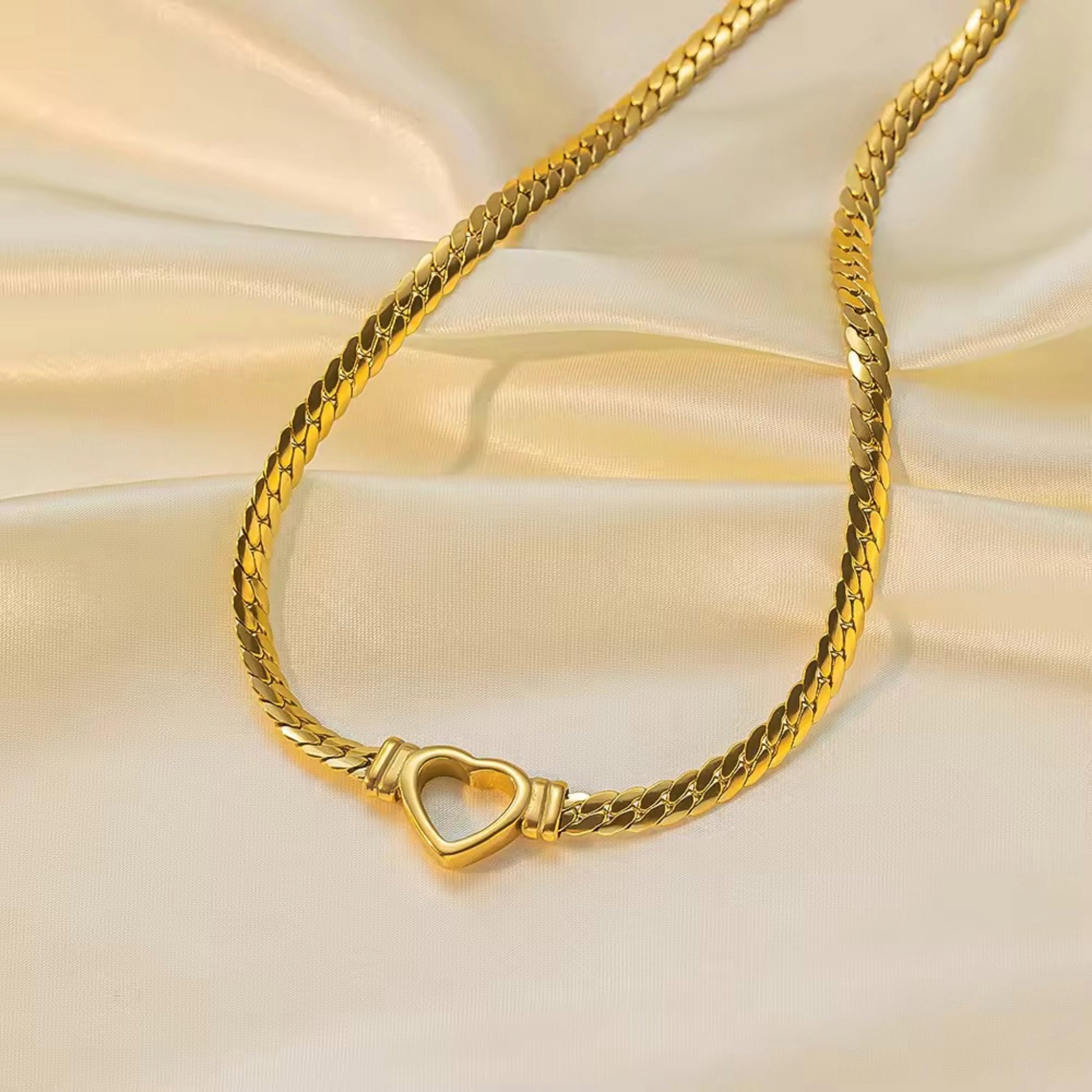 The Heartcore Chain Set comprises a gold-tone heart link necklace and bracelet, designed to complement minimalist aesthetics. This matching jewelry set is suitable for both daily wear and special occasions, making it an ideal gift. Its elegant design enhances versatility in women's accessories. Limited stock is available.